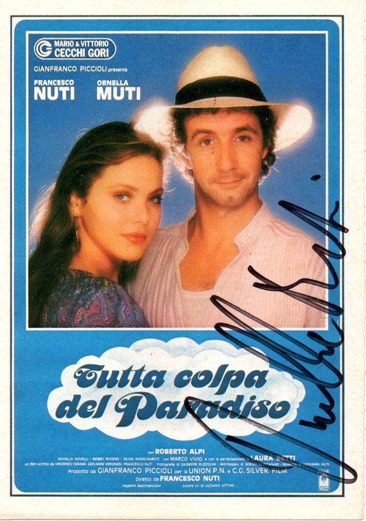 Autografo di Ornella Muti Cartolina Tutta Colpa del Paradiso Muti