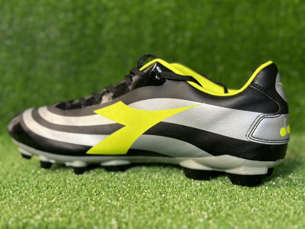 Scarpa Diadora taglia 45 con autografo di Roberto Baggio sul logo giallo.
