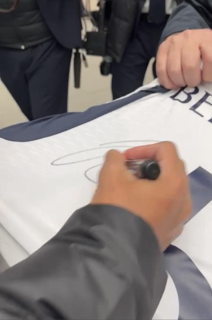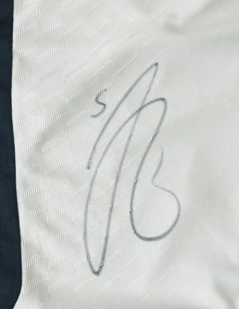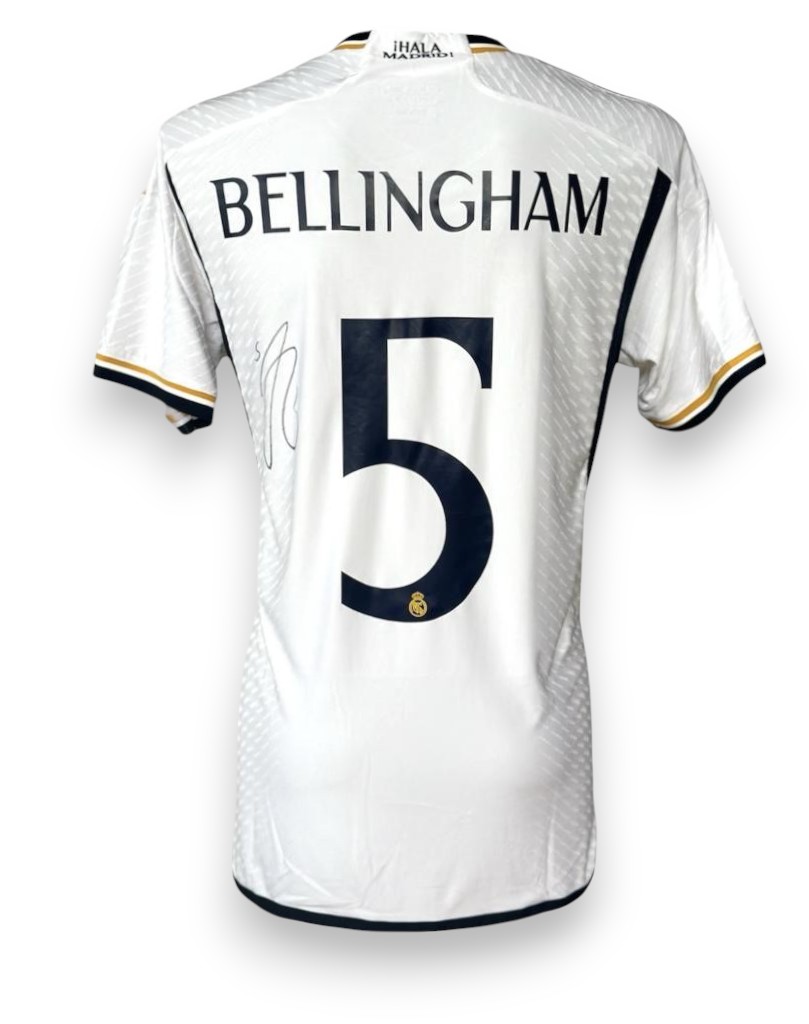 Autografo di Jude Bellingham su maglia home del Real Madrid 2023-2024 in versione Store Authentic, la tipologia di maglia più vicina a quella Player Version.