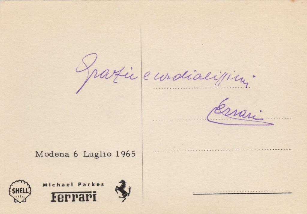 L'autografo di Enzo Ferrari deve essere considerato come uno dei più rari di tutto il mondo automobilistico, visto l'enorme popolarità del personaggio.
