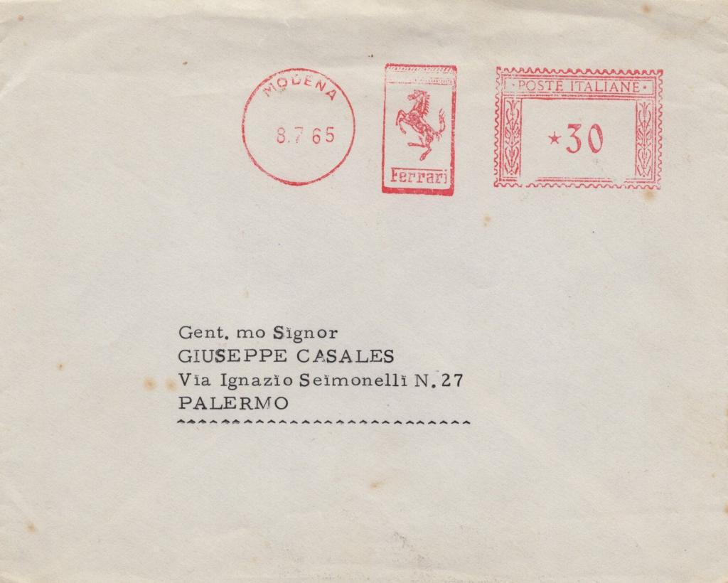 Si allega inoltre la busta originale d'invio, corredata di timbri Ferrari e timbri postali originali.