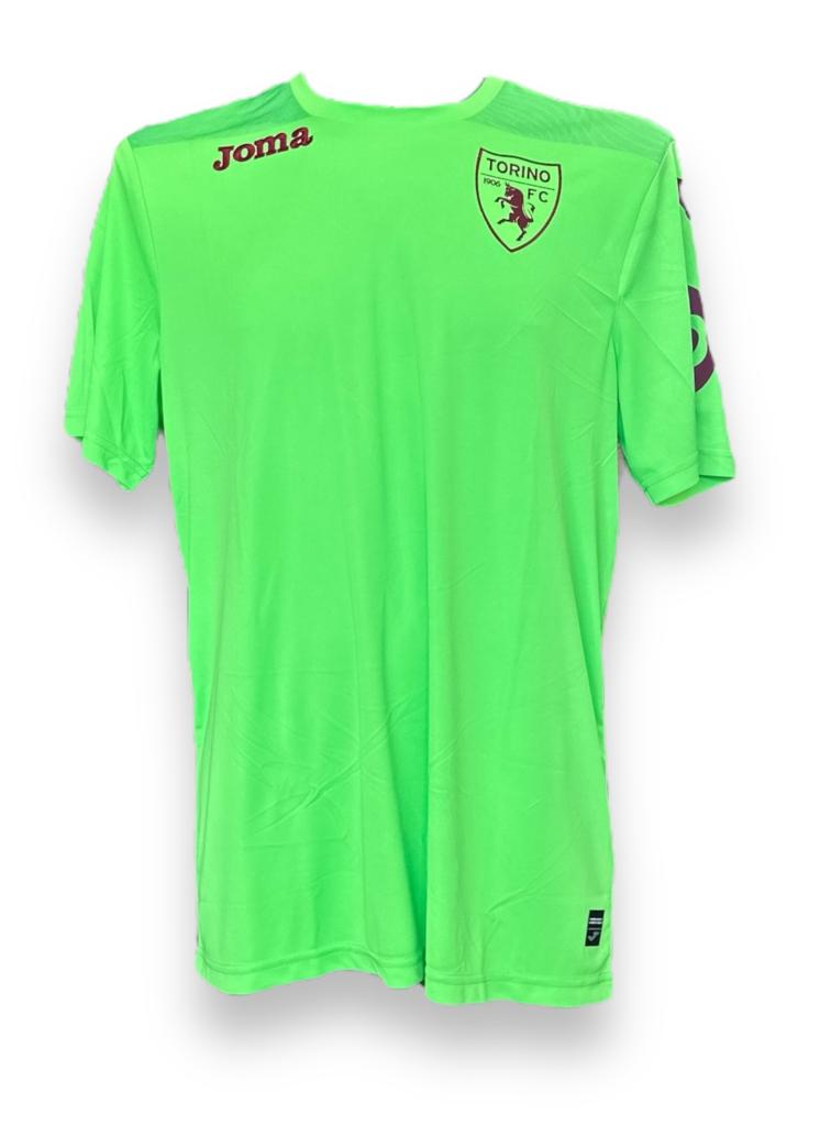 Presenti sulla spalla sinistra lo sponsor "JD" e sul fronte lo sponsor tecnico cucito "Joma" unitamente allo stemma del Torino Calcio su fondo verde.