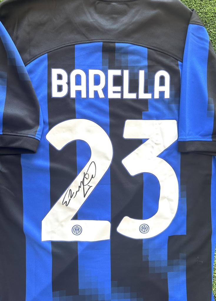 Barella ha apposto la sua firma sul retro all'interno del numero 2.