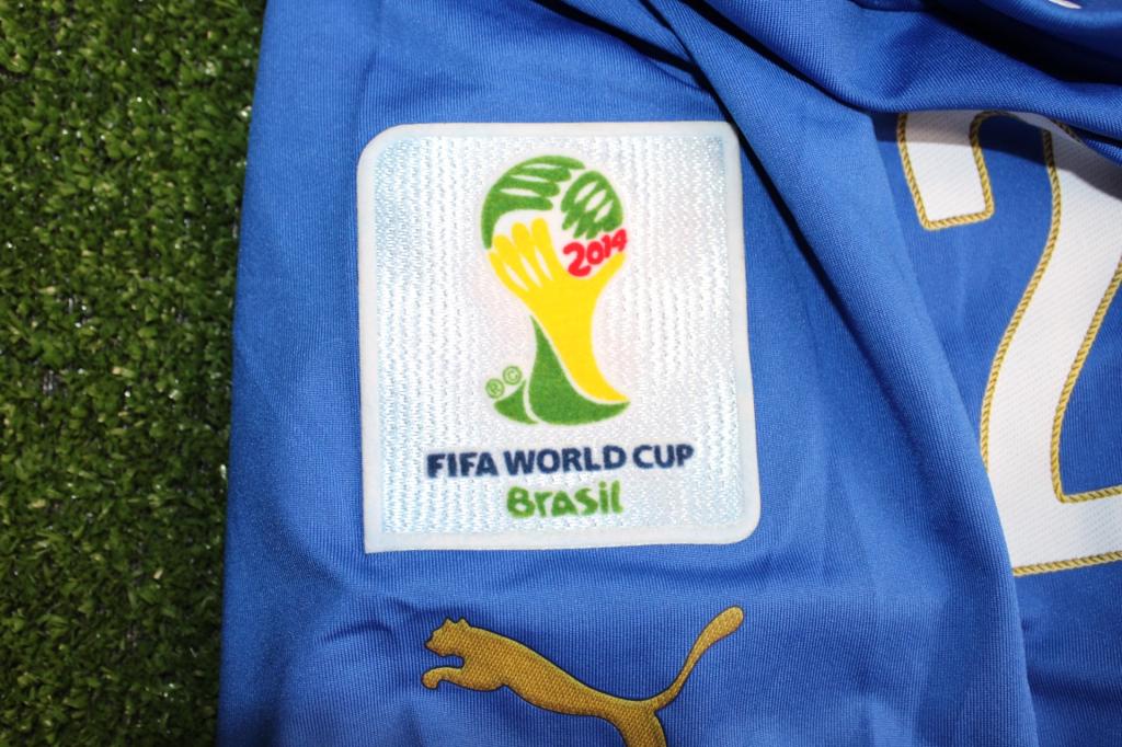 La divisa, prodotta da Puma in questa versione molto attillata, riporta i bottoni al colletto e le patches sulle maniche: "Fifa World Cup Brasil 2014" e "Football for Hope".