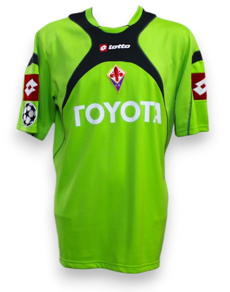 Maglia Home da portiere Player Issued della Fiorentina preparata per il calciatore Sébastien Frey per la stagione 2010-2011 per una partita della Champions League.