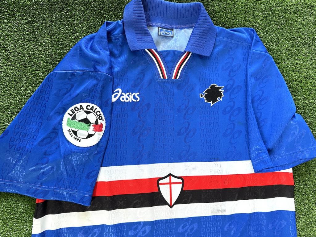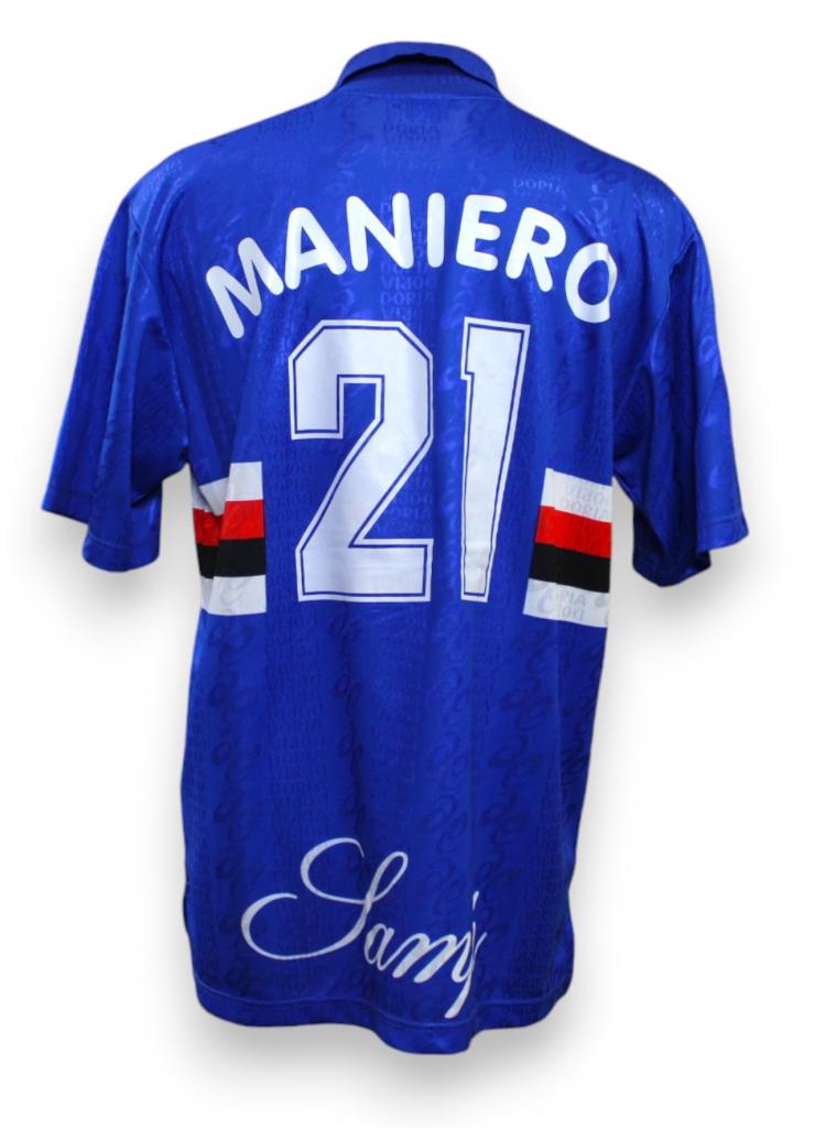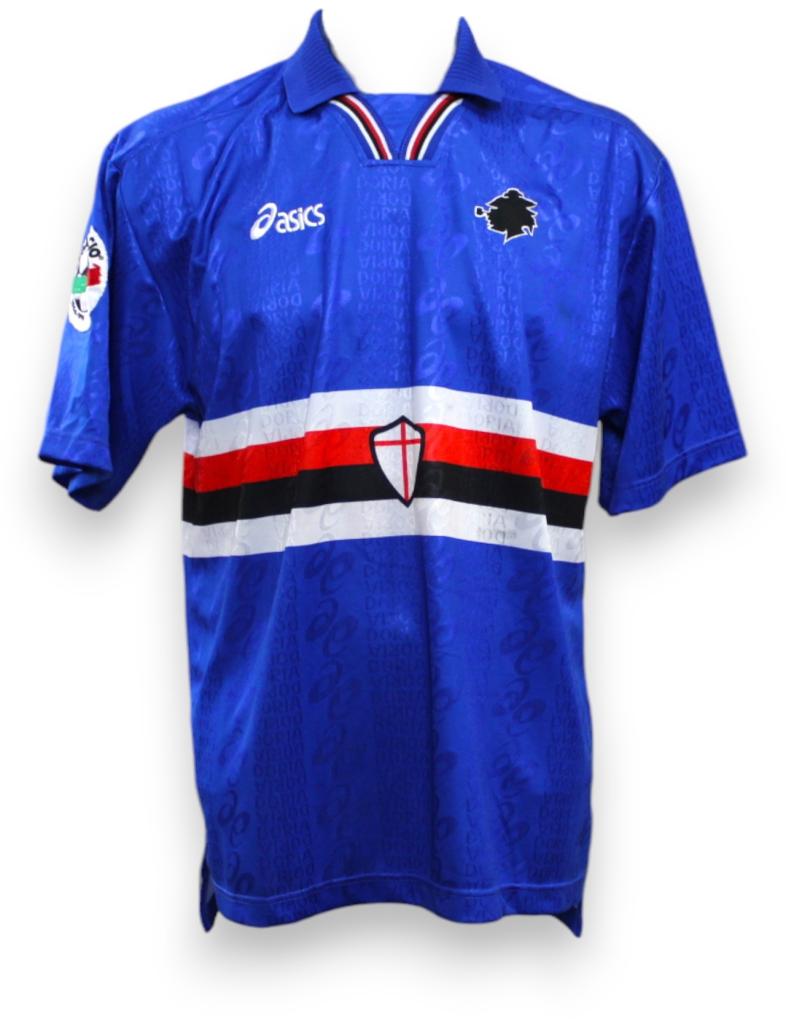 Maglia Player Issued versione Home della Sampdoria preparata per il calciatore Filippo Maniero per una partita della stagione 1995-1996 della Lega Calcio Serie A.