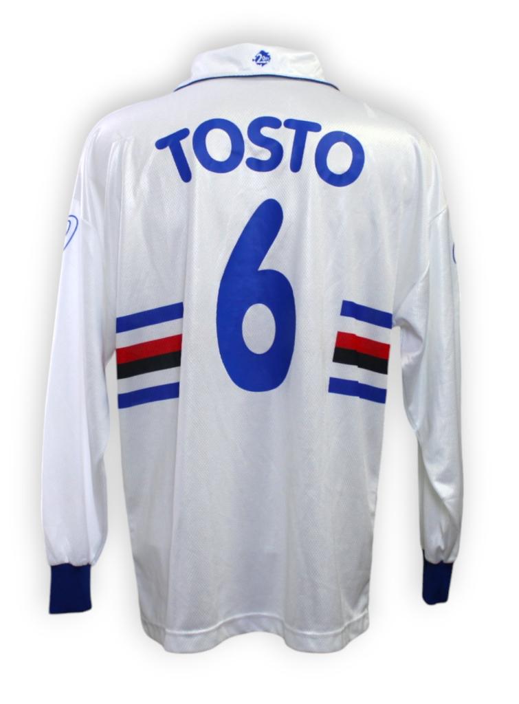 Maglia Player Issued versione Trasferta della Sampdoria preparata per il calciatore Vittorio Tosto per la stagione 1999-2000 per una partita della Lega Calcio Serie A.