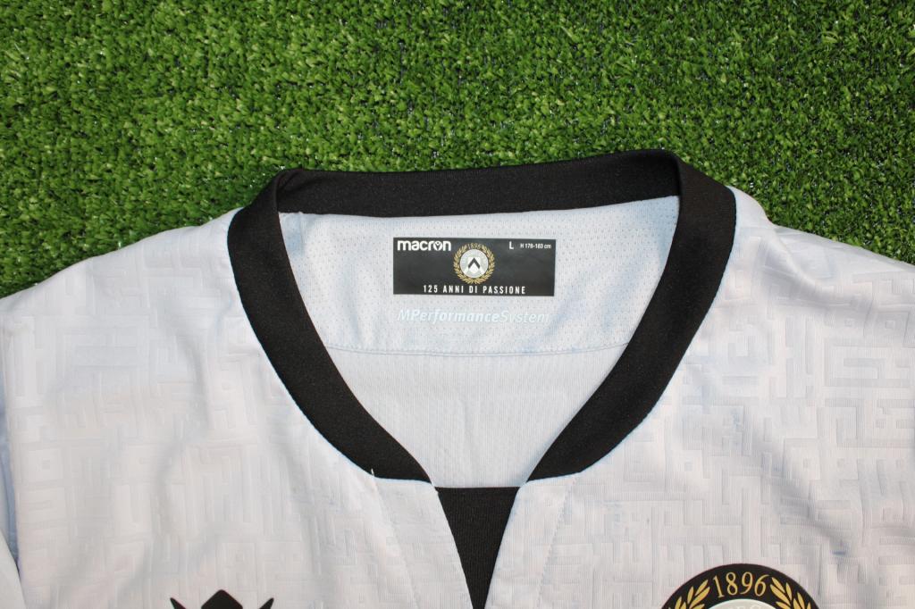 Le maglie dell'Udinese si caratterizzano tradizionalmente per i colori bianconeri, con strisce verticali che rappresentano l'identità del club. Questi colori risalgono sino dalla sua fondazione della squadra nel 1896 e sono diventati nel tempo un simbolo di appartenenza per i tifosi friulani.