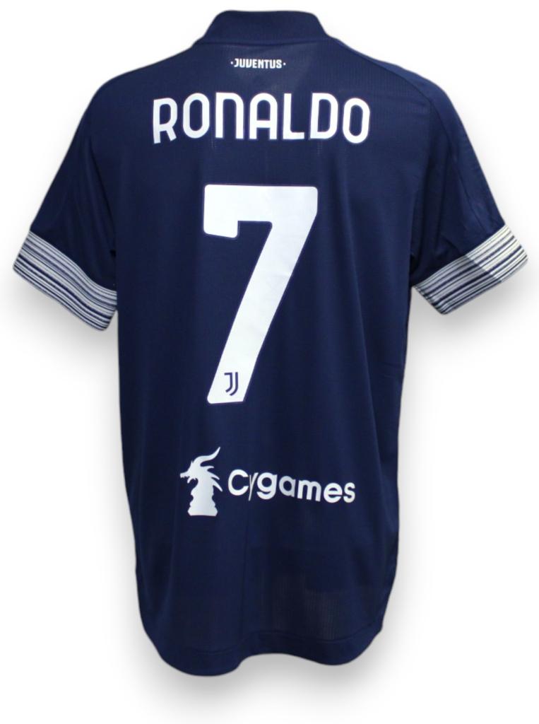 Maglia Player Issued versione Away della Juventus preparata per il calciatore Cristiano Ronaldo per una partita di Serie A della stagione 2020-2021.