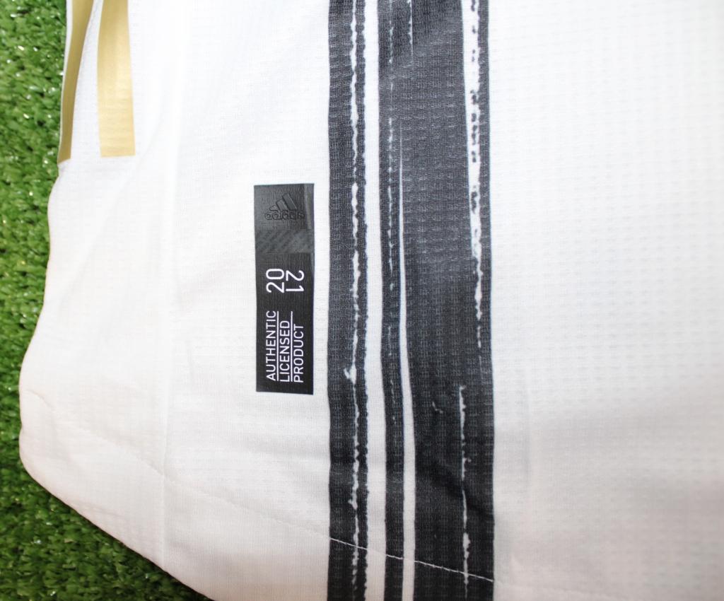 Pennellate artistiche in bianco e nero, arricchite da abbaglianti dettagli in oro. La nuova maglia da campionato Home 2020/2021 si ispira all'arte moderna e rappresenta il calcio come forza creativa, vera espressione di estro e talento. Il modello è realizzato in jersey di poliestere riciclato per un approccio rispettoso dell'ambiente e presenta un design versatile con collo a V a coste.