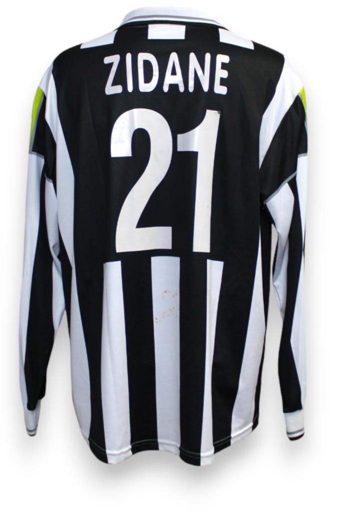 Maglia Player Issued versione European Home della Juventus preparata per il calciatore Zinédine Zidane per una partita di Champions League della stagione 2000-2001.