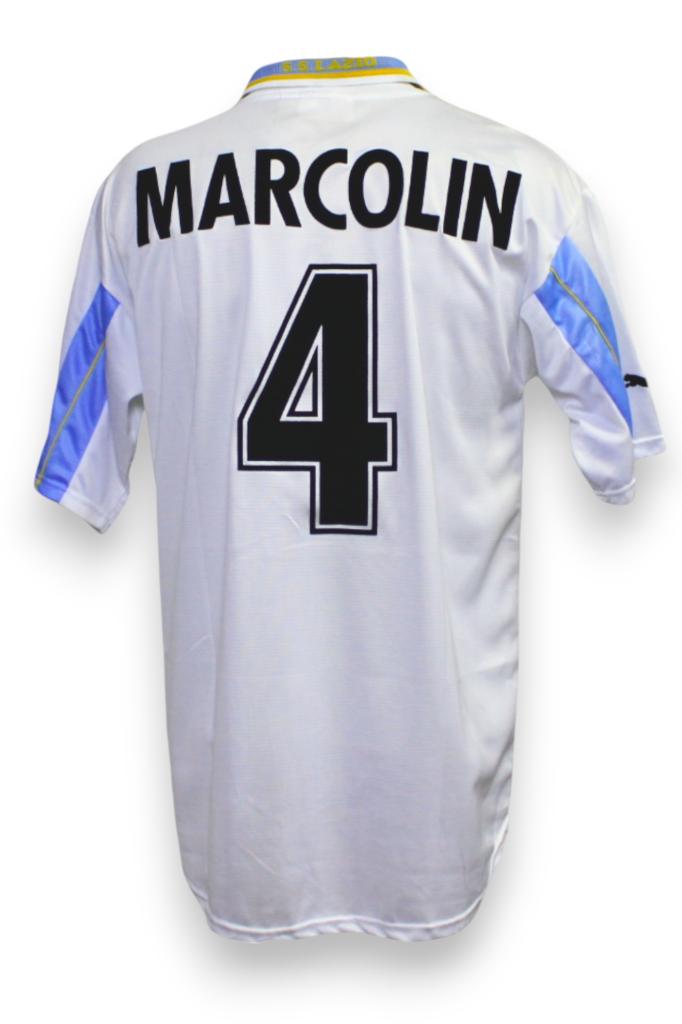 Rara maglia store versione Centenary Home della Lazio con il nameset del calciatore Dario Marcolin della stagione 1999-2000.