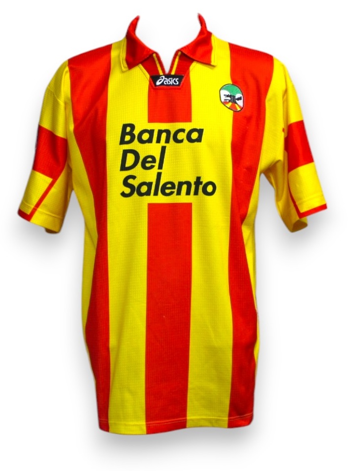 Maglia Player Issued versione Home del Lecce preparata per il calciatore Maurizio Rossi per una partita di Serie A per la stagione 1998-1999.