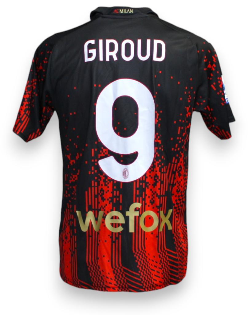 Maglia Store versione Quarta - Koché del Milan con il nameset del calciatore Olivier Giroud della stagione 2022-2023.
