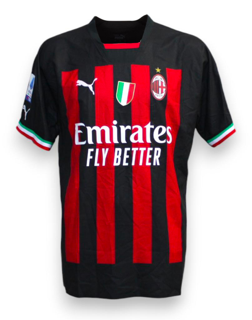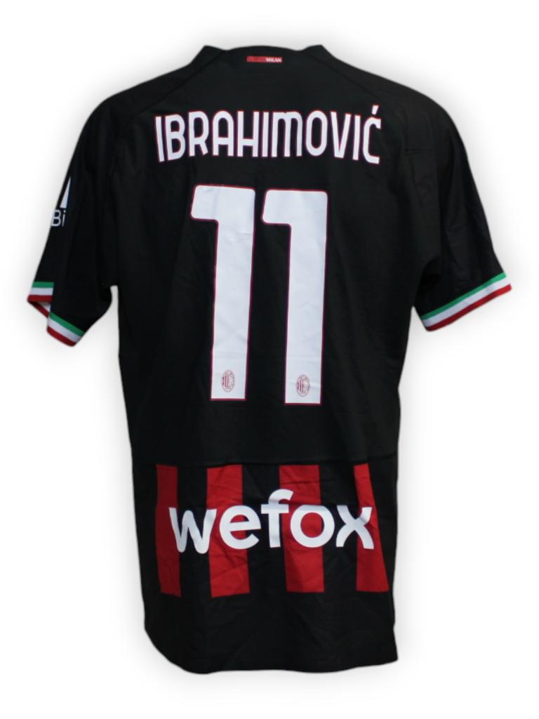 Maglia Store versione Home del Milan con il nameset del calciatore Zlatan Ibrahimovic della stagione 2022-2023.