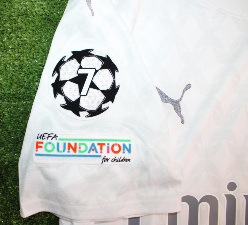 Presenti anche le patches sulla manica della Champions League e UEFA Foundation for Children.