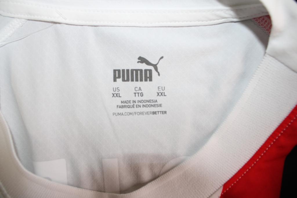 La maglia da trasferta Puma Milan 23-24 presenta un interessante design in bianco, argento scuro, rosso e nero.