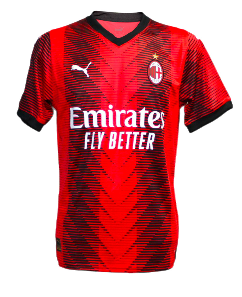 La maglia Puma Milan 2023-2024 presenta la combinazione di colori più classica della squadra - rosso e nero - ma un design rivoluzionario.