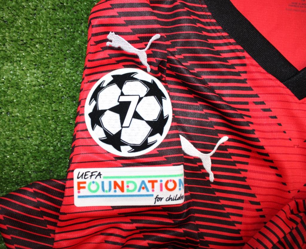Presenti le patches della Champions League e UEFA Foundation for Children.