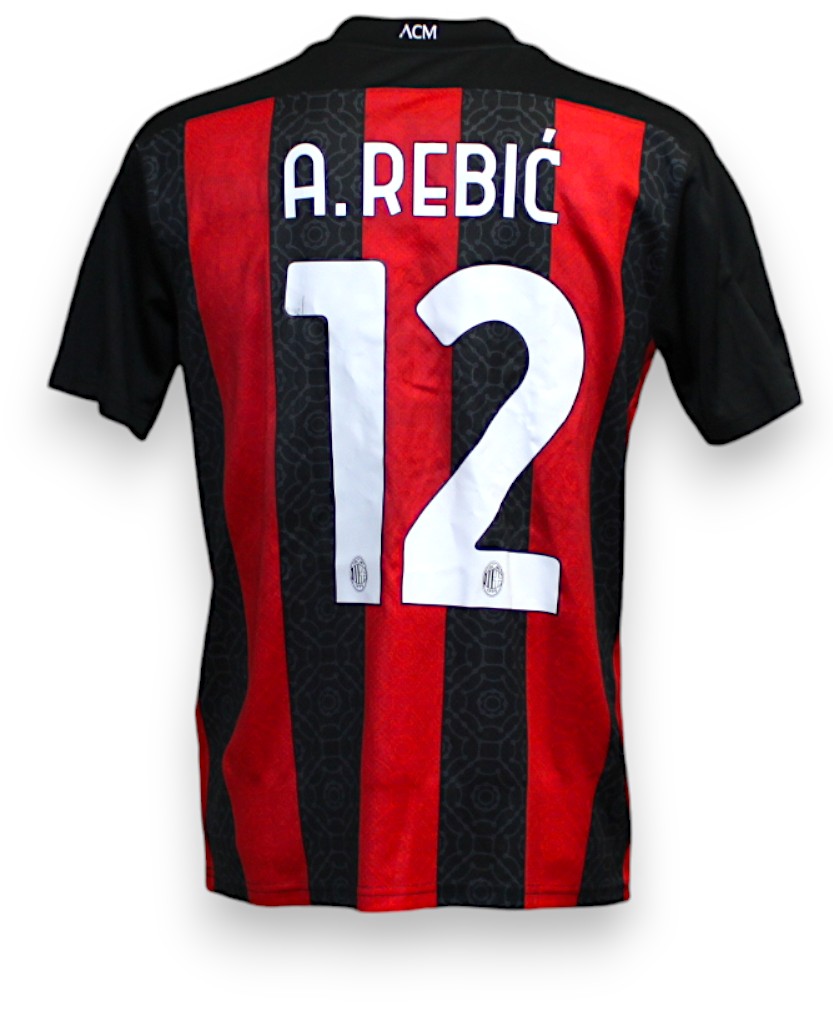 Maglia Store versione Home del Milan con il nameset del calciatore Ante Rebic della stagione 2020-2021.