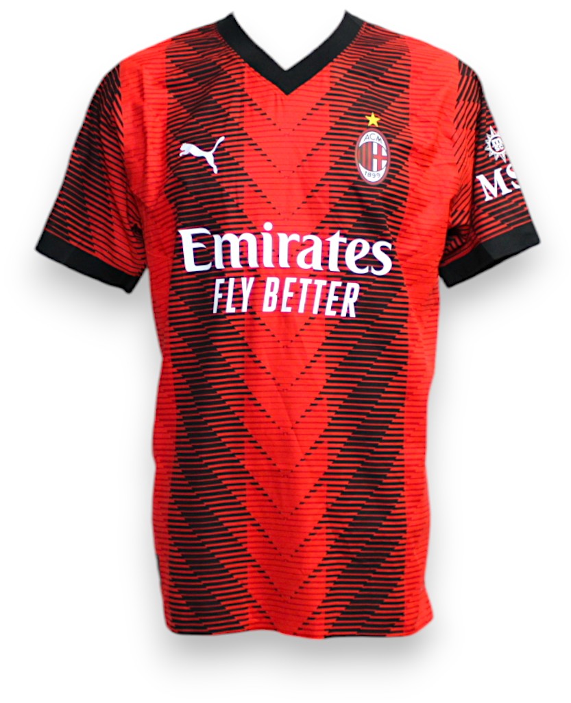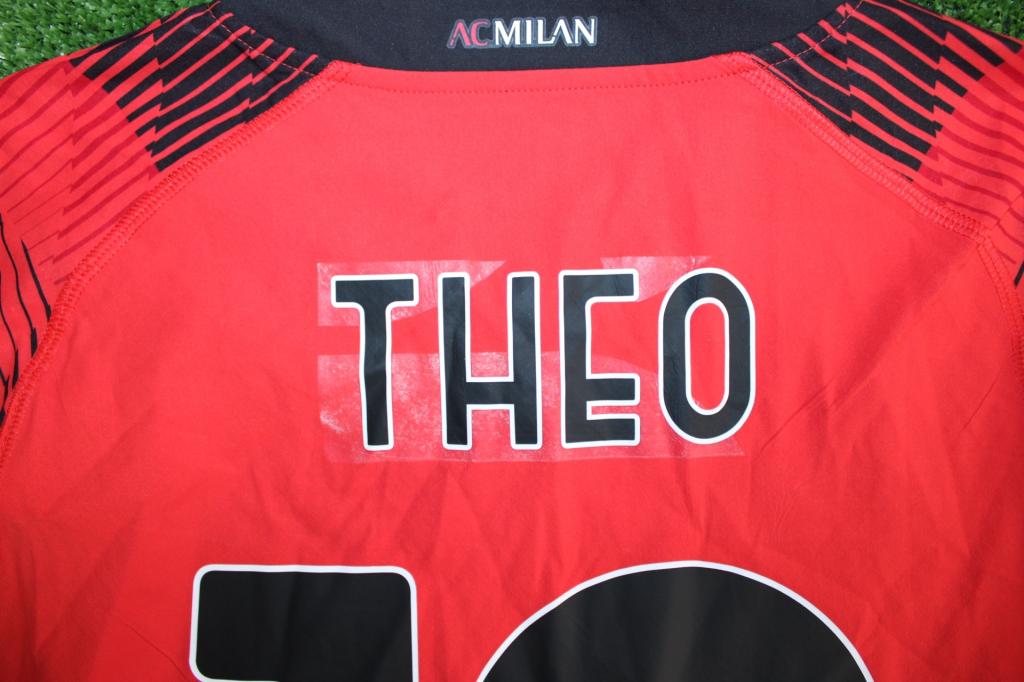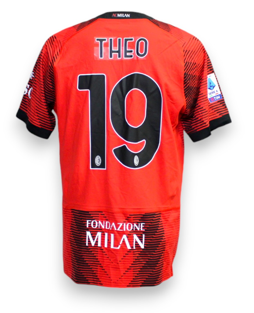 Maglia Store versione Home del Milan con il nameset del calciatore Theo Hernandez della stagione 2023-2024.