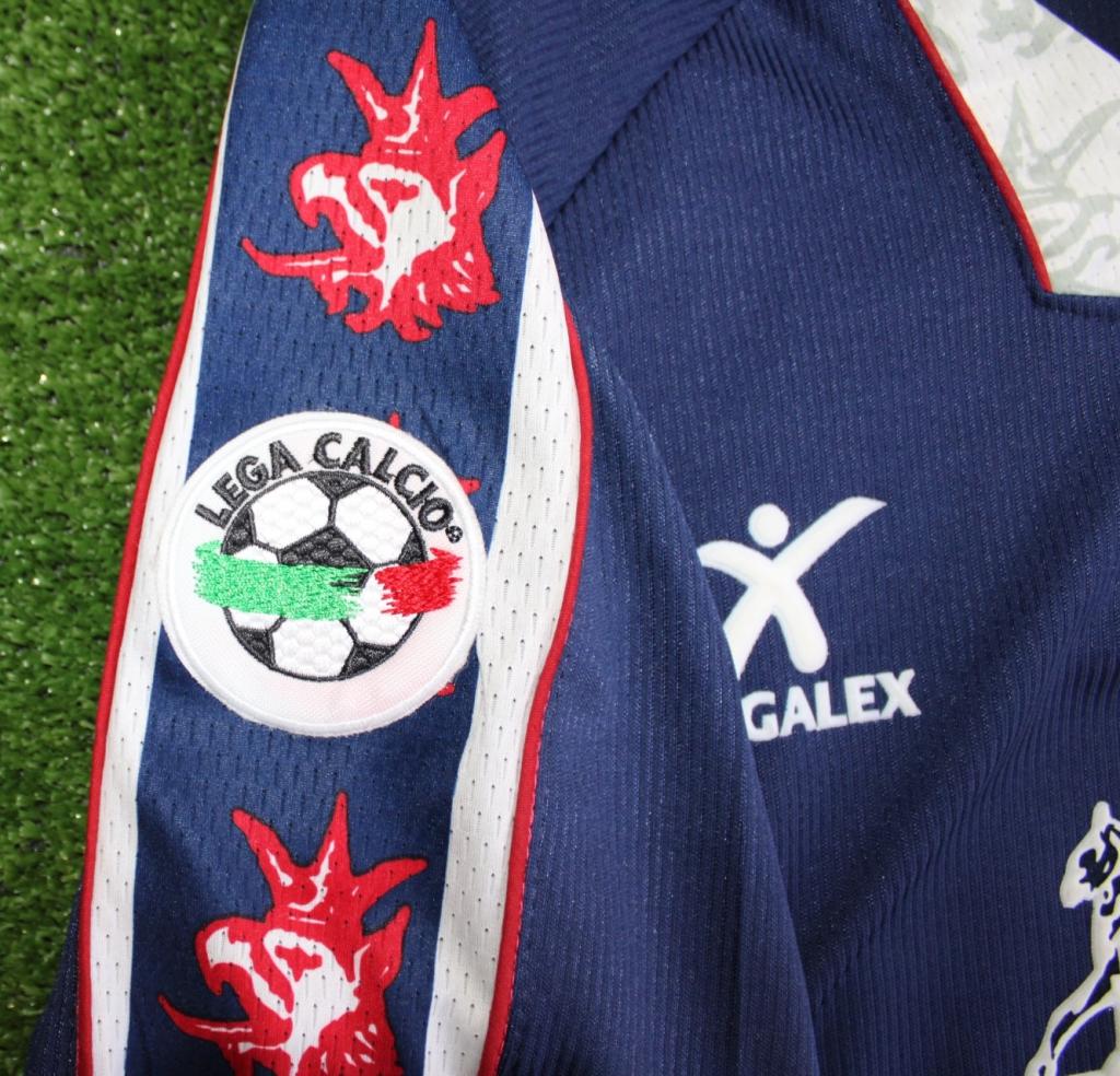 Presente sulla manica la patch della Lega Calcio e lo sponsor sul petto "Perugina".