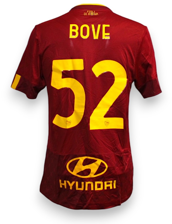 Maglia Store versione Home della Roma con il nameset del calciatore Edoardo Bove della stagione 2022-2023.