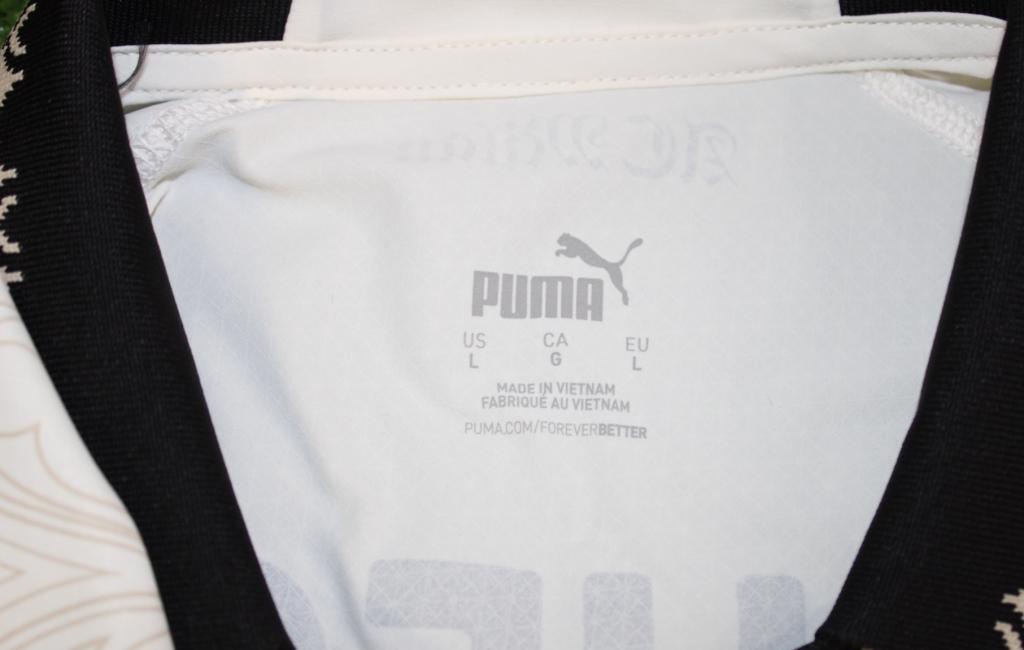 La maglia Pleasure Puma Milan 2023-2024 presenta un'elegante colorazione color crema con un design unico che ricorda il Duomo di Milano.