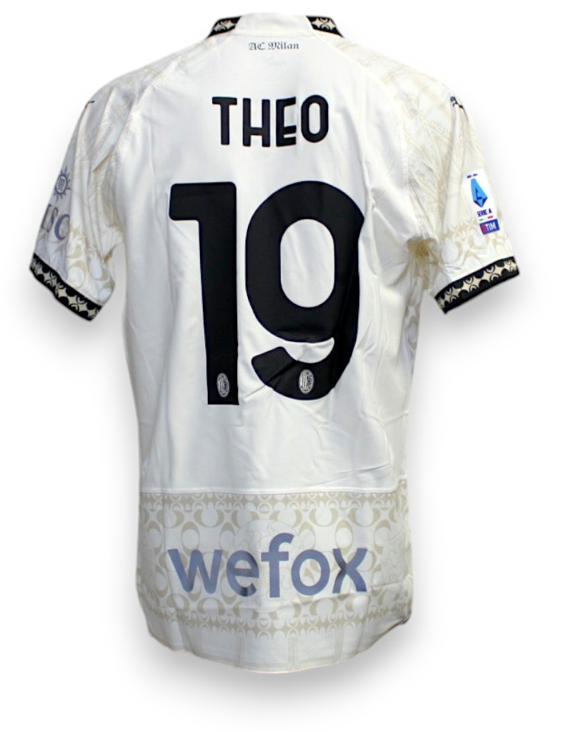 Maglia Store versione Pleasure (Quarta) del Milan con il nameset del calciatore Theo Hernández della stagione 2023-2024.