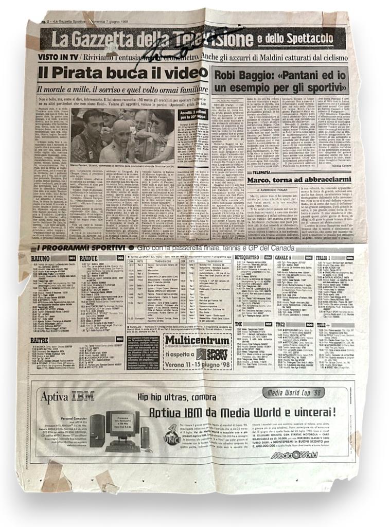 Autografo di Marco Pantani Gazzetta dello Sport Vittoria Giro