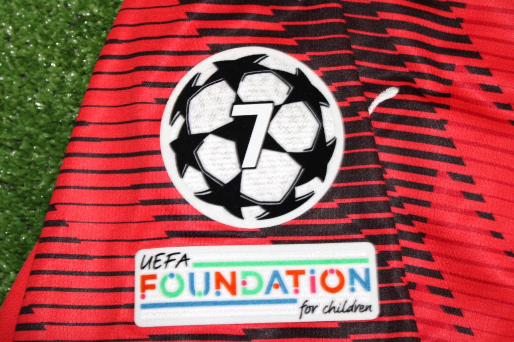 La divisa riporta le patch della Champions League e della UEFA Foundation sulla manica destra.