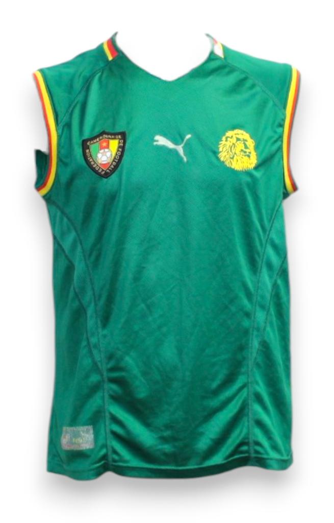 La maglia Home originale del Camerun 2002 fu un grandissimo azzardo da parte di Puma, in quanto è priva di maniche. Le regole del kit FIFA vietavano la divisa senza maniche ai Mondiali di calcio in Corea e Giappone del 2002, così alla fine la nazionale di calcio dei Leoni e il suo fornitore hanno risolto il problema attaccando un solido tessuto nero al posto delle maniche per ottenere il look originale.