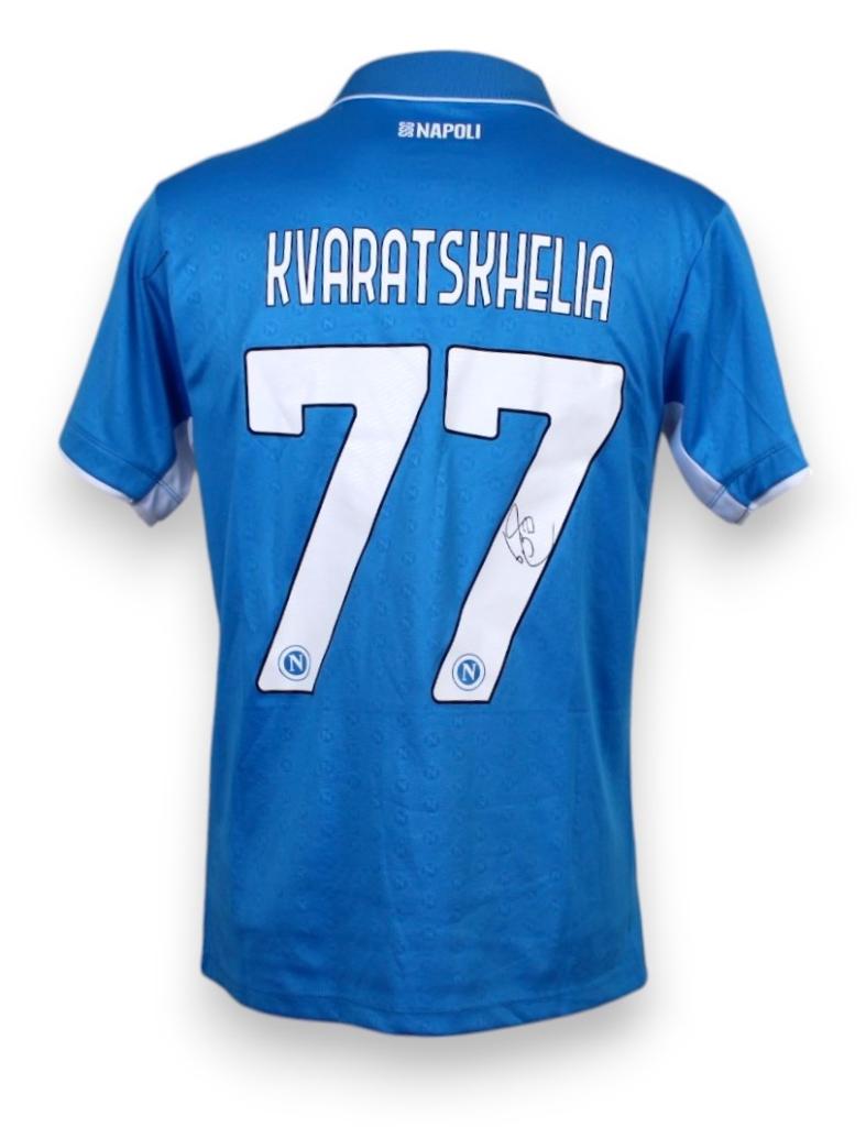 Maglia Autografata versione Home 2024-2025 Store dell'attaccante georgiano del Napoli, Khvicha Kvaratskhelia.