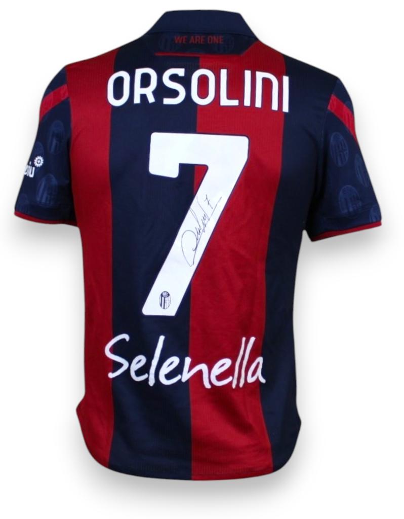 Maglia Autografata versione Home 2023-2024 Store del centrocampista italiano del Bologna, Riccardo Orsolini.