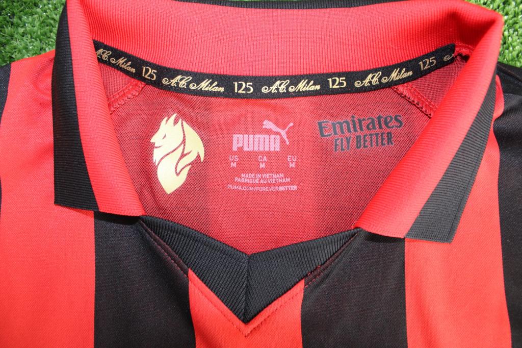Il logo dorato del club sul retro del colletto e la personalizzazione con il numero 6 rendono omaggio a Franco Baresi, icona del Milan.