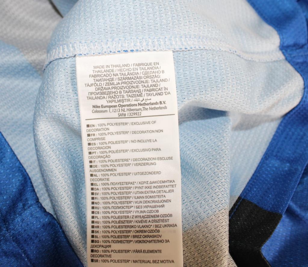Maglia dell’Inter 2012-13 autografata da Javier Zanetti. Si tratta di una versione store prodotta da Nike, realizzata in Thailandia, con tecnologia Dri-Fit. Il design presenta le classiche strisce verticali nerazzurre, con colletto nero e sponsor tecnico Nike ricamato sul petto, opposto allo stemma dell’Inter con stella dorata. Sponsor Pirelli in bianco.