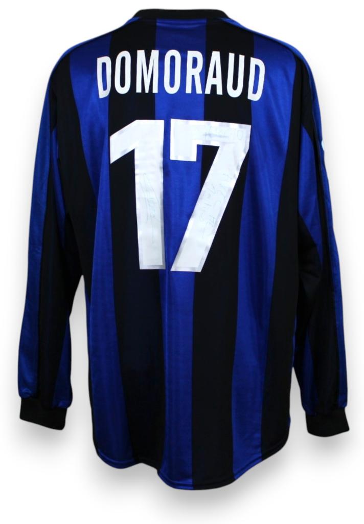 Maglia Inter Home 1999-00 player issued autografata Domoraud, patch Lega Calcio e dettagli Nike; versione manica lunga