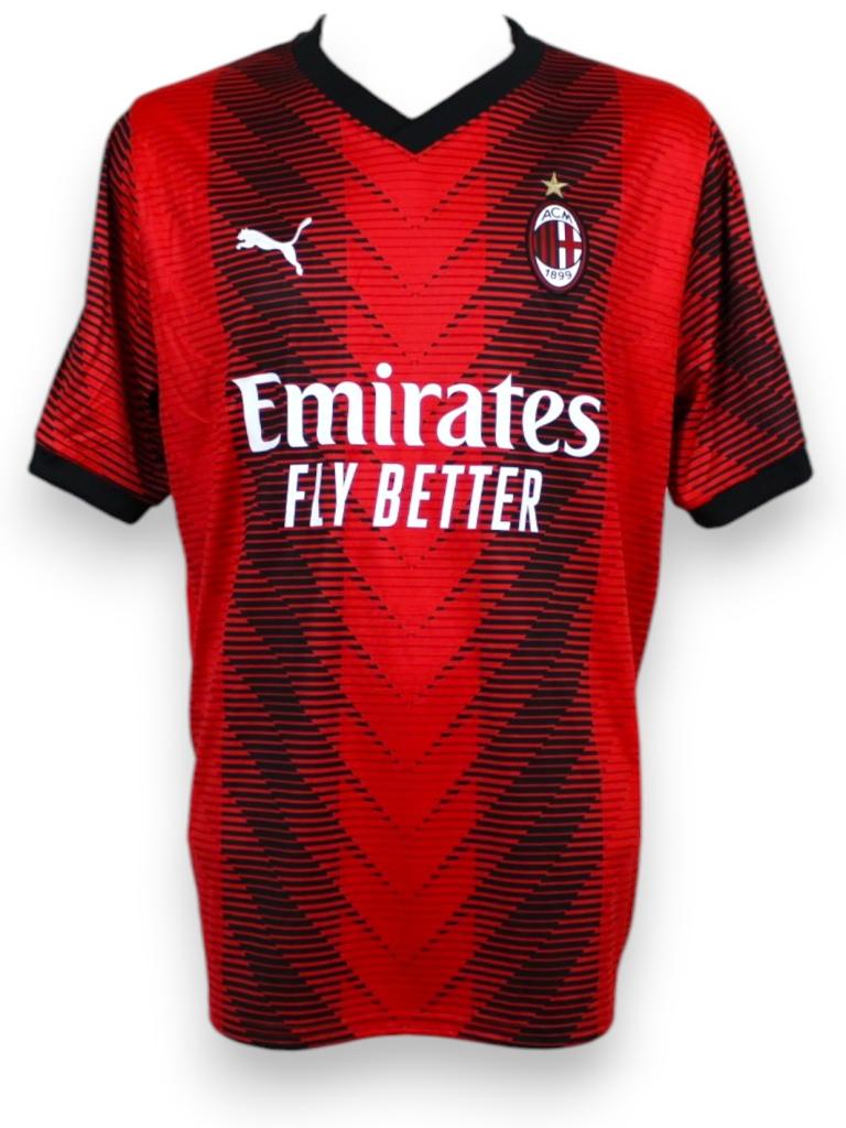 Maglia home ufficiale dell’AC Milan stagione 2023-24, versione store firmata da Zlatan Ibrahimovic.