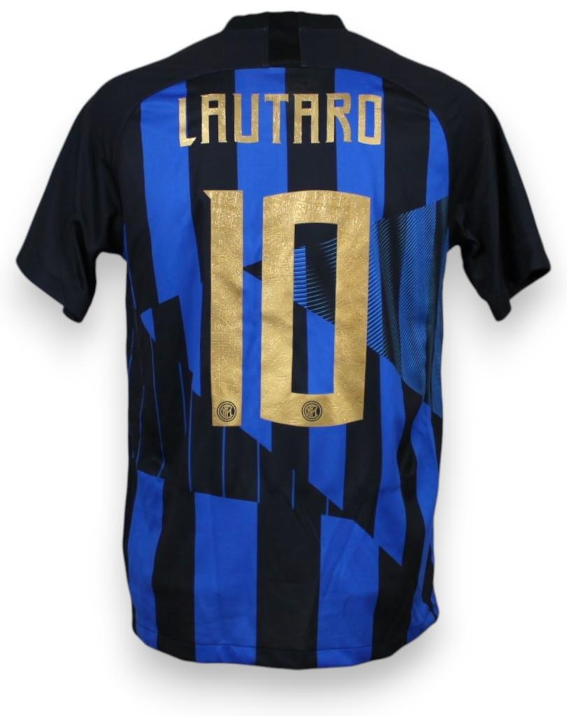 Maglia home ufficiale dell’Inter stagione 2018-19, versione store con personalizzazione “Lautaro 10”.