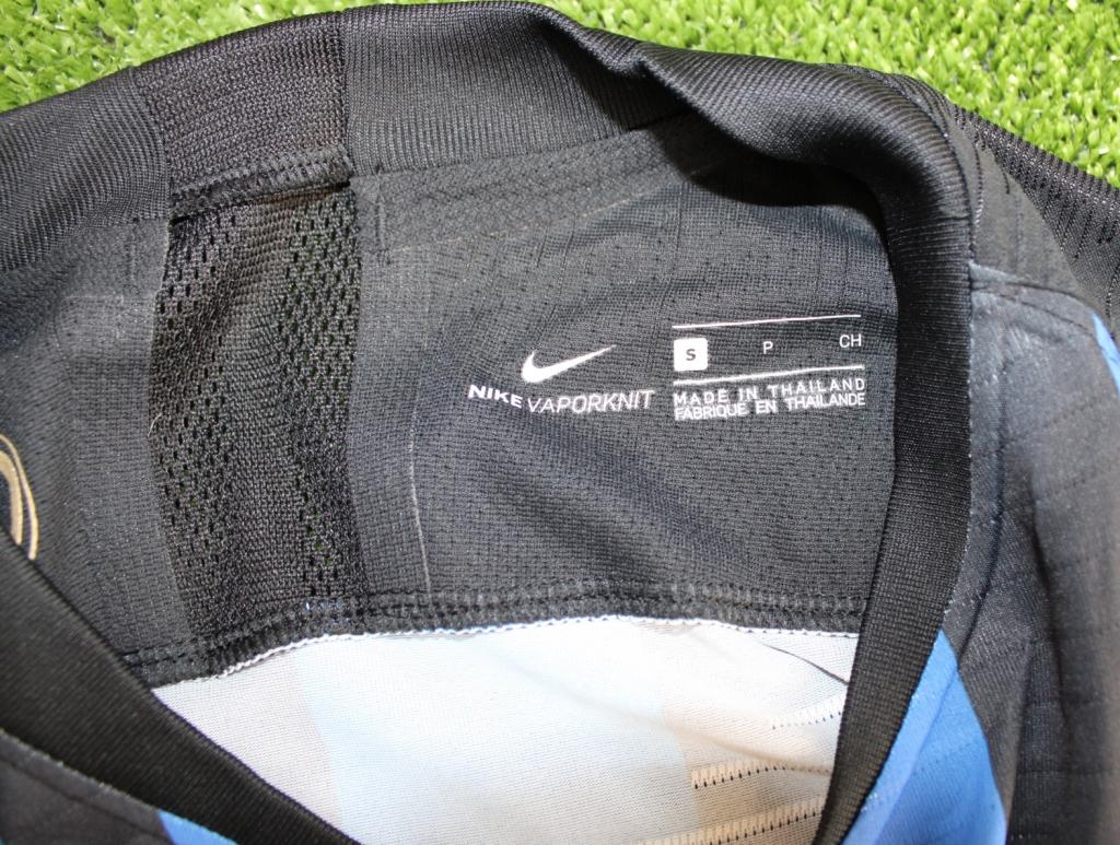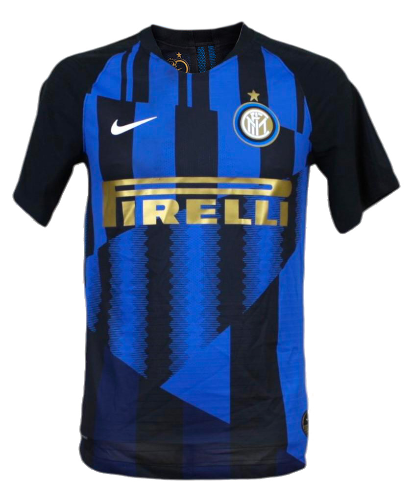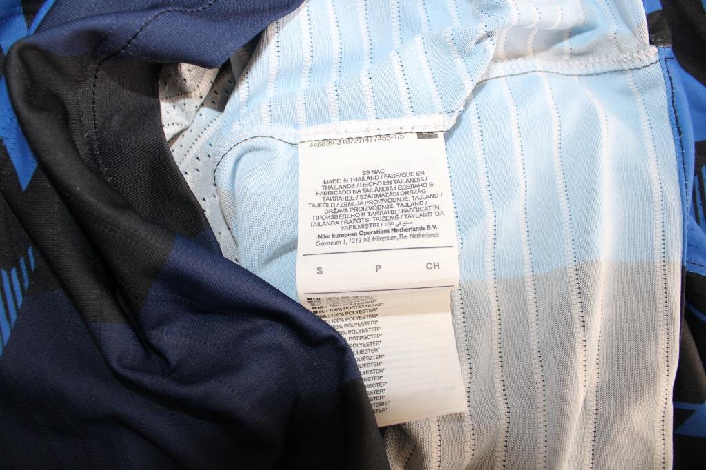 Lo stemma dell’Inter è cucito con stella celebrativa sopra il cuore. Il tessuto tecnico Dri-FIT garantisce traspirabilità e comfort. Divisa realizzata per celebrare il 20° anniversario della collaborazione tra il marchio americano e la squadra nerazzurra.
