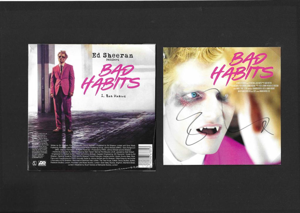 Autografo di Ed Sheeran su copertina del singolo Bad Habits