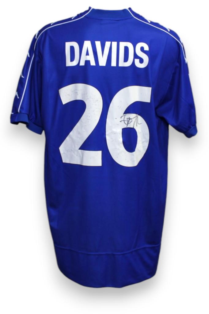 Sul retro sono presenti il nome “Davids” e il numero 26, autografato dal centrocampista olandese.