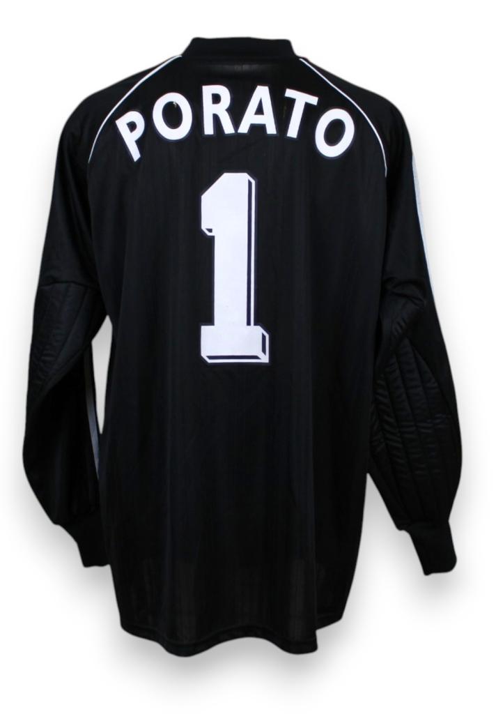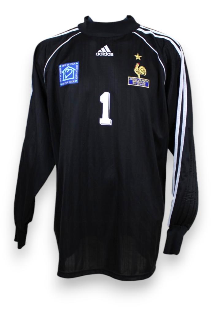 Maglia da portiere della Nazionale Francese indossata da Giorgio Porato in occasione del giubileo di Jean-Pierre Papin, disputato a Marsiglia il 30 maggio 1999.Realizzata da Adidas in versione player issued, presenta il numero 1 e il nome “PORATO” termoapplicati sul retro.