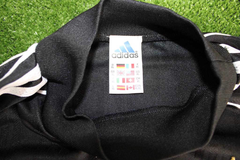 Dettagli autentici del periodo, con inserti imbottiti sui gomiti e taglia XL visibile nella label interna. La maglia è confezionata in poliestere nero, con inserti bianchi e cuciture originali. Un pezzo raro per appassionati e collezionisti di memorabilia internazionali.
