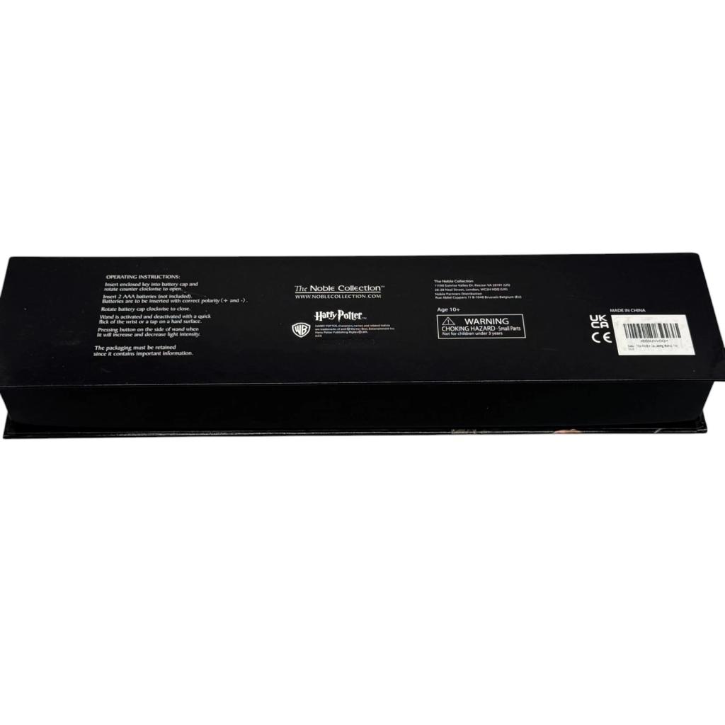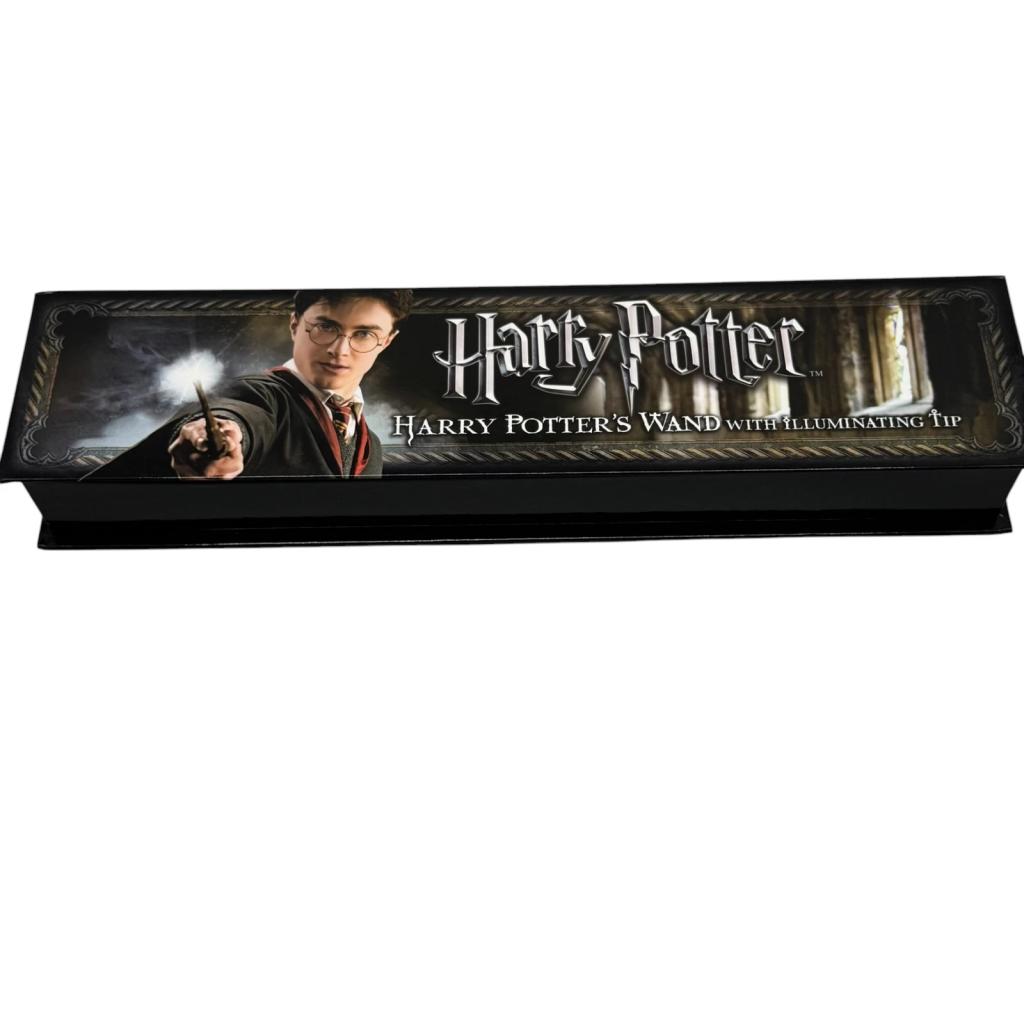 Replica ufficiale della bacchetta di Harry Potter con punta luminosa, tratta dalla linea Noble Collection. Il modello, curato nei dettagli e completo di confezione originale illustrata, si attiva con un semplice movimento del polso: la luce si accende e si spegne con un gesto, per un effetto scenico garantito.