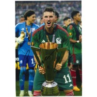 Autografo di Santiago Giménez su fotografia a colori che lo ritrae con la maglia dell’AC Milan durante una fase di gioco, firmata sul fronte.