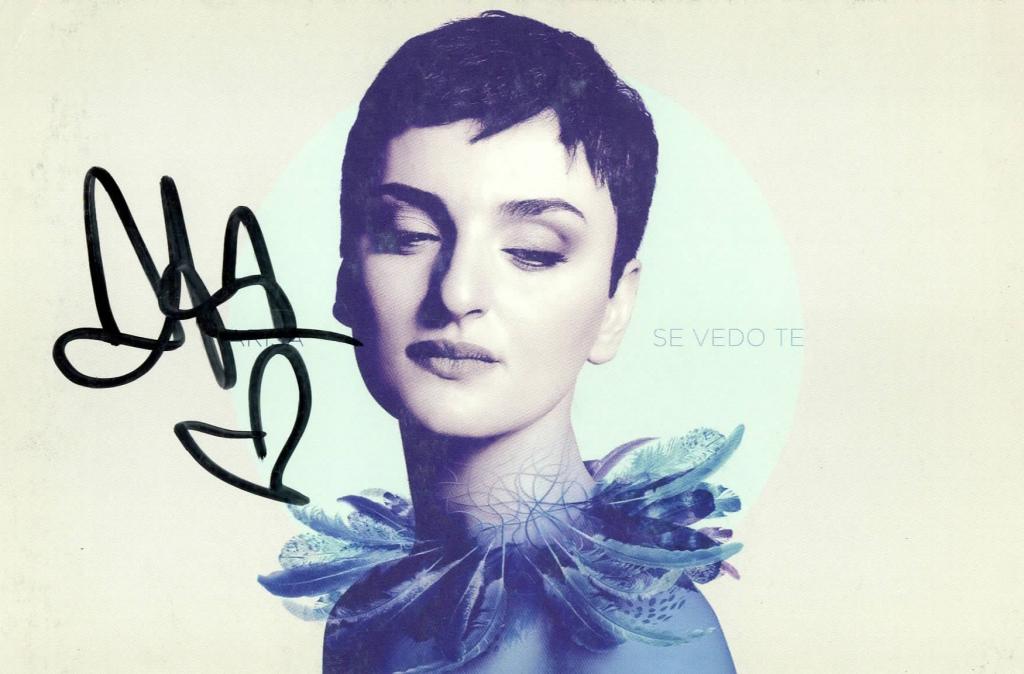 Cartolina promozionale "Se Vedo Te" autografata da Arisa, originale da collezione, ideale per fan e collezionisti, certificabile.