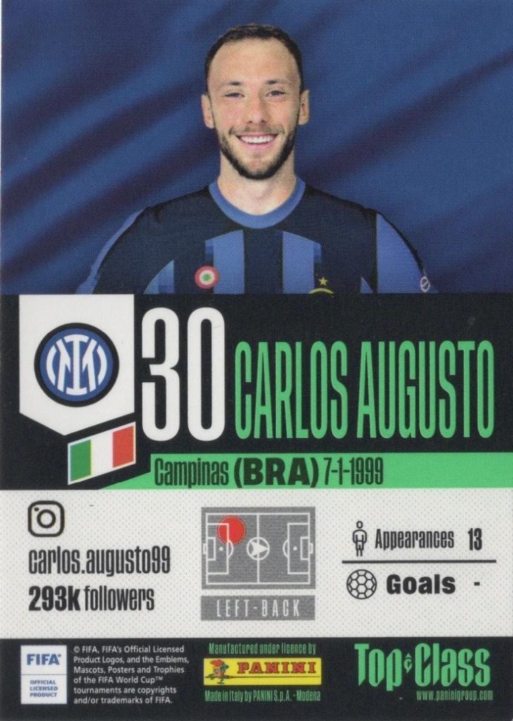 Carlos Augusto, nato nel 1999 in Brasile, è un calciatore che ricopre il ruolo di esterno difensivo, affermatosi in Serie A con il Monza prima del trasferimento all’Inter, distinguendosi per spinta sulla fascia e continuità di rendimento, oltre a essere entrato nel giro della Nazionale brasiliana.