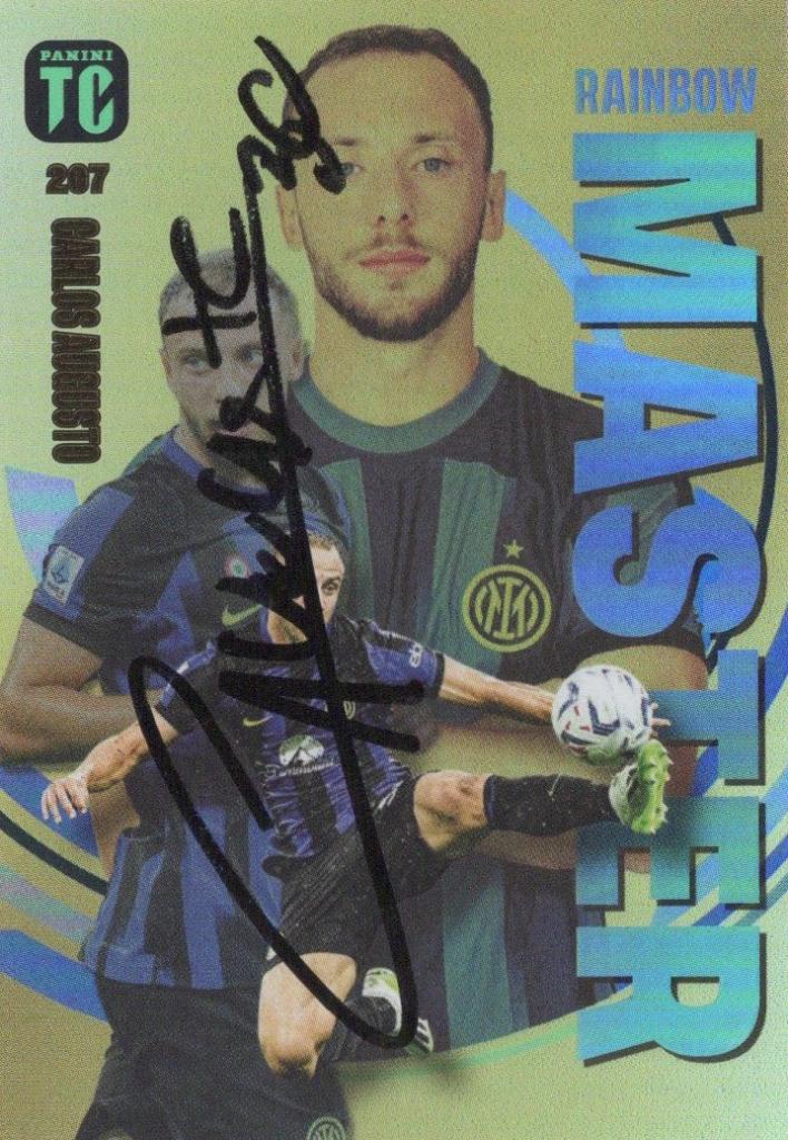 Autografo di Carlos Augusto su card Panini TC (Total Collection) numero 207 edizione Rainbow Master che lo ritrae in azione con la maglia dell’Inter nel layout ufficiale della collezione, firmata sul fronte.