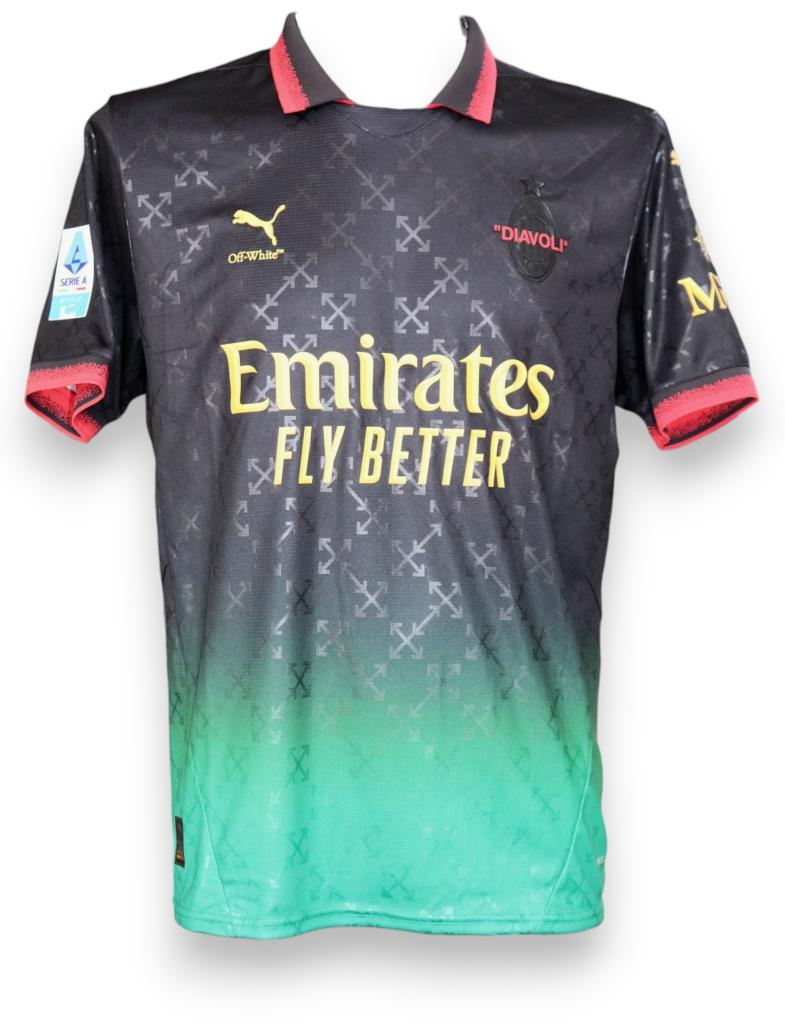 Maglia Milan Fourth 24/25 autografata da Reijnders. Edizione Puma x Off-White, name set 14, con patch Serie A e certificazione ufficiale.